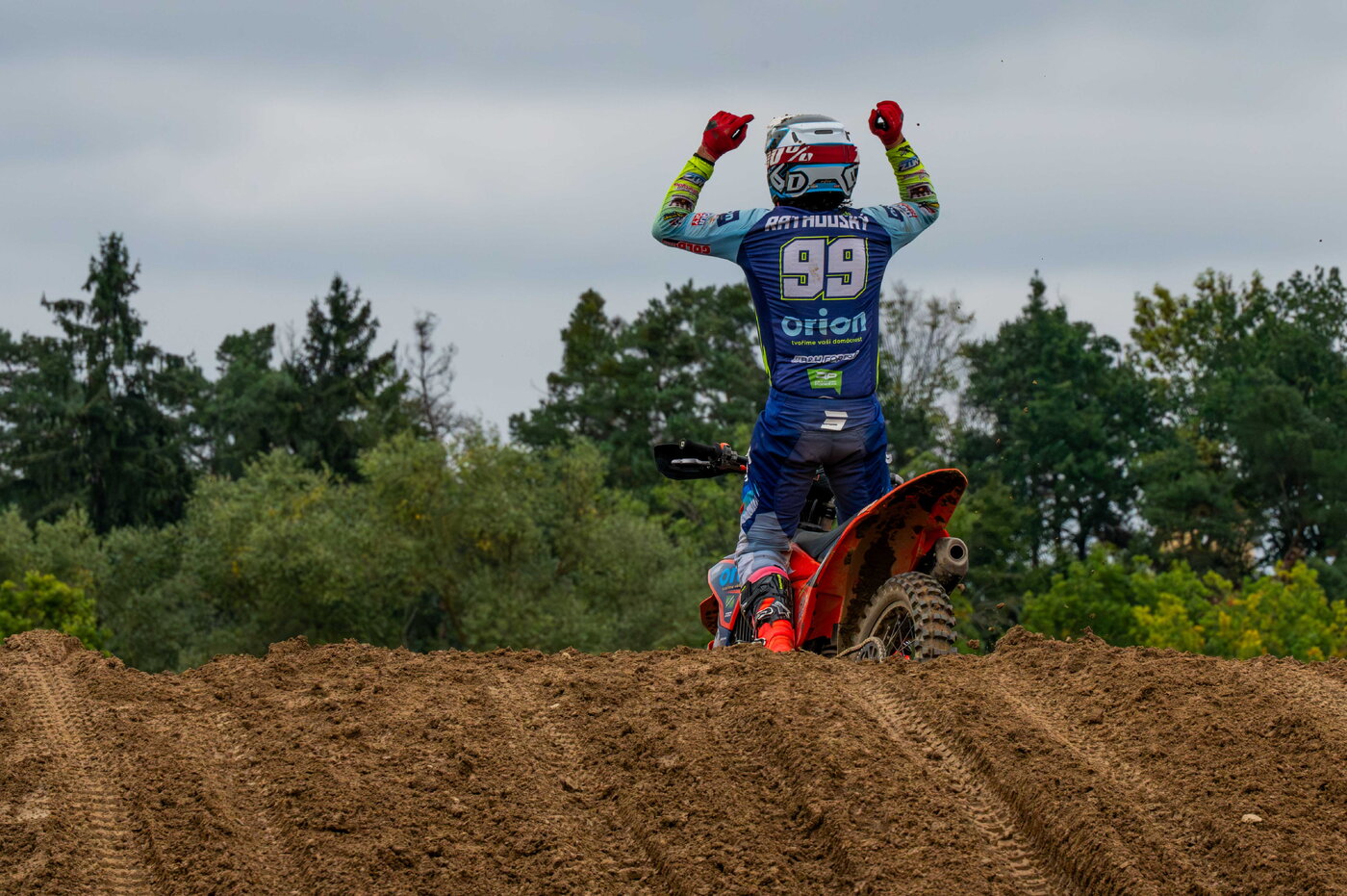Petr Pedro Rathouský (Orion Racing, KTM, č. 99) nenechal na jinínské dráze pochyby o tom, kdo bude králem nejsilnější skupiny MX2 Junior – svoji dominanci proměnil v dvojnásobné vítězství v závodě a po dojezdu druhé rundy mohl slavit s fanoušky juniorský titul! Pedro tak po seniorském stříbru v Opatově (MX2) bere prvenství v juniorech a s letošní sezonou může být nadmíru spokojen.