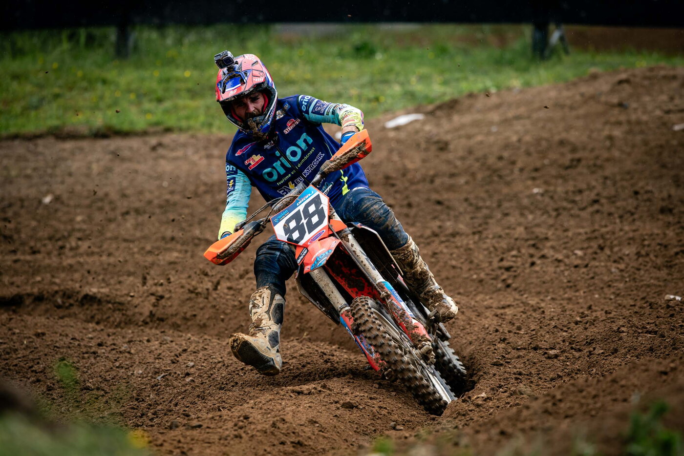 Petr Rathouský (Orion Racing, KTM, 99) vybojoval na trati celkové druhé místo a z Kramolína si odváží červenou tabulku, pro lídra kubatury MX2.